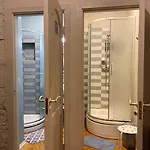 这家青年旅舍的客房铺镶木地板. 在旅舍的客房里有分开的洗手间 和淋浴.